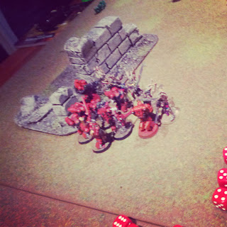 the Hormogaunts failed to recover from fleeing from the Dreadnought but luckily stopped 2 inches away from the table edge, some luck there at least.